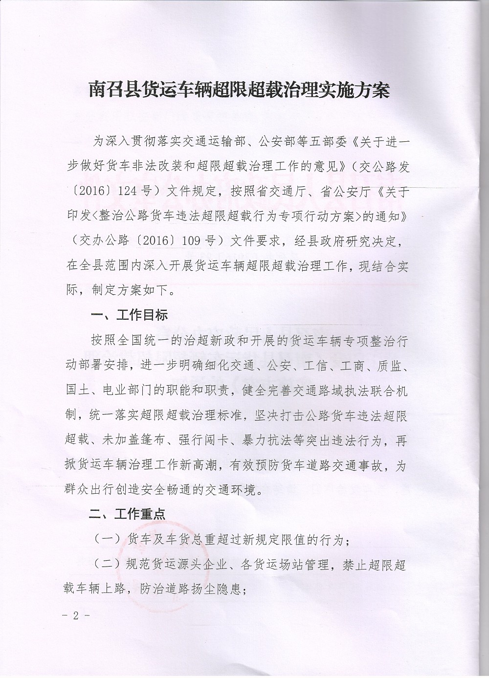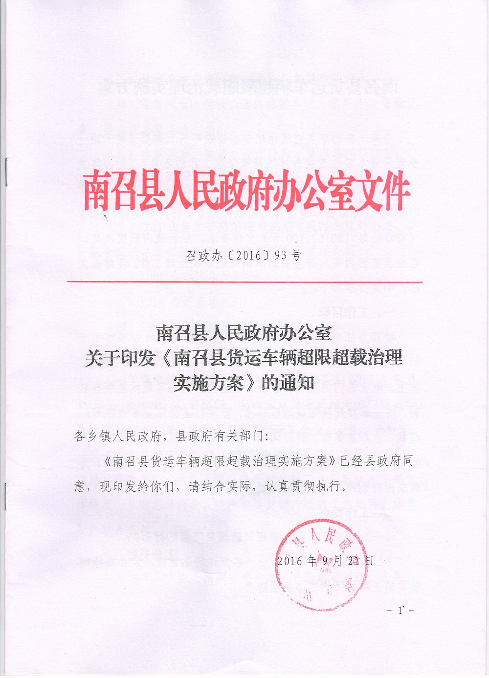 关于《南召县货运车辆超限超载治理实施方案》的通知