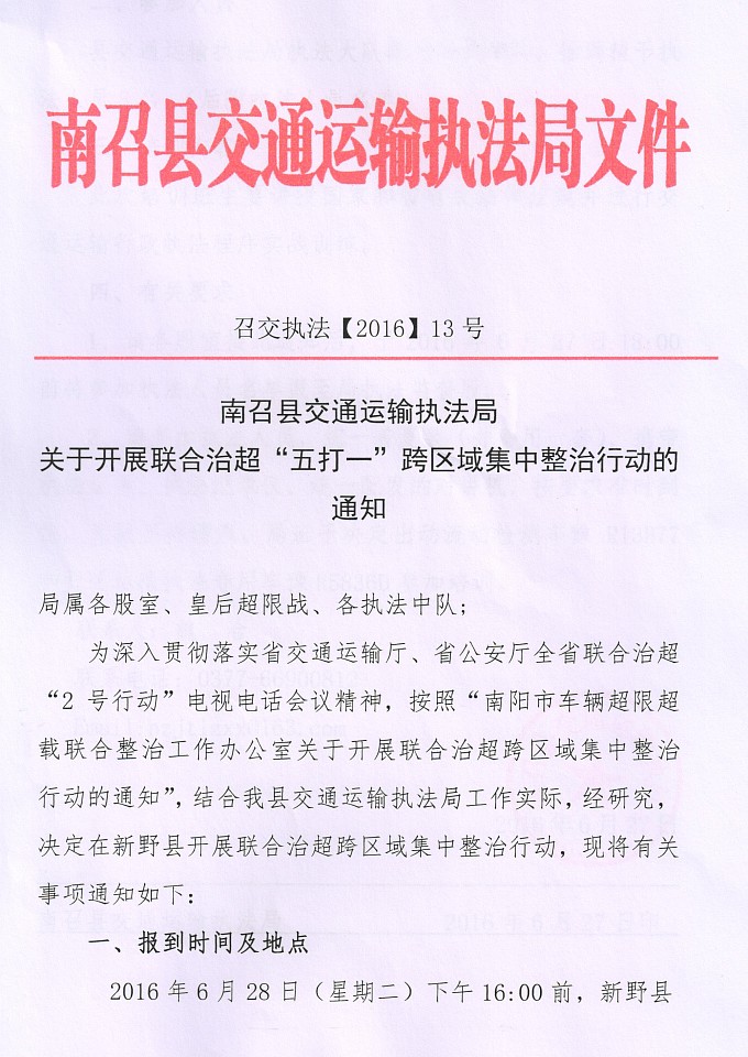 南召县交通运输局 公安局 联合开展治超“2号行动”工作实施方案