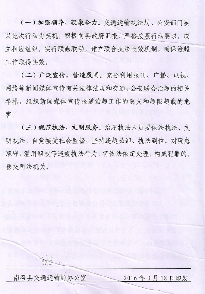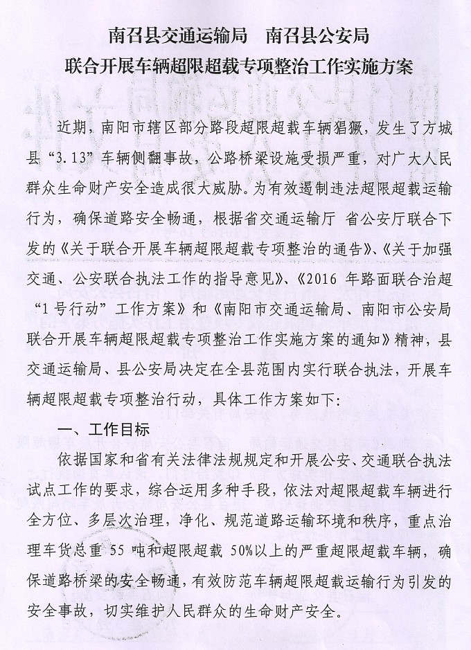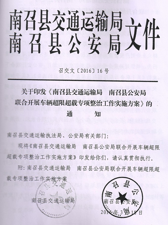 关于印发《南召县交通运输局 南召县公安局 联合开展车辆超限超载专项整治工作实施方案》的通知